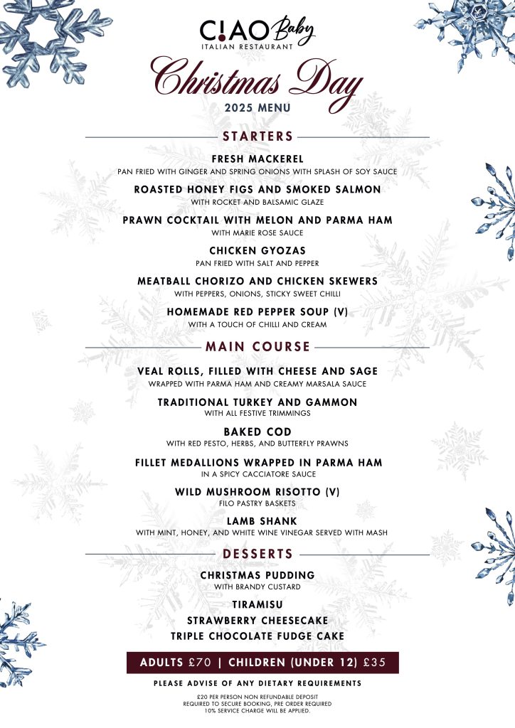 We have two Christmas menus. One available on Christmas Day, and another menu which is available throughout December, excluding 25th and 31st.